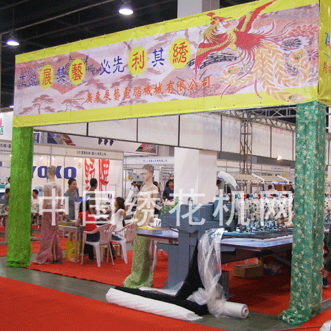 本展會將使杭州及周邊地區(qū)服裝及制衣設(shè)備企業(yè)充分了解國內(nèi)、國際制衣設(shè)備的最新動態(tài)和最新技術(shù)。在展會現(xiàn)場,記者看到了由廣東展藝電腦機械有限公司提供的兩臺大型的多頭電腦繡花機(左下圖),在會場中吸引了眾多的觀眾的關(guān)注。