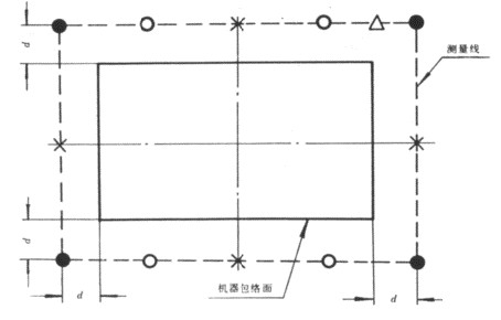 ×-基本測(cè)點(diǎn):Δ-最高A聲級(jí)(測(cè)量線上測(cè)得最高的A聲級(jí)的測(cè)點(diǎn),也屬基本測(cè)點(diǎn));