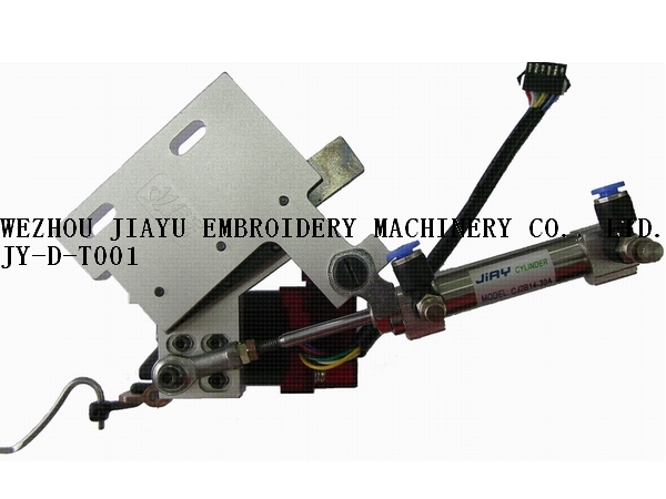 智能毛巾繡裝置JY-D-T001在平繡的基礎上,實現(xiàn)了毛巾繡的效果。調試簡單,裝置安裝在機頭后面。性能穩(wěn)定,可與盤帶繡,金片繡一起實現(xiàn)三全一效果。